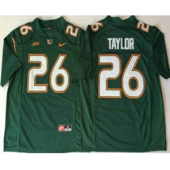 Men's Miami Hurricanes #26 Sean Taylor Green Stitched NCAA Nike College Football Jersey