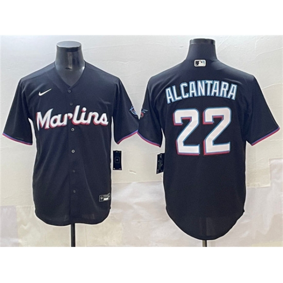 Men's Miami Marlins #22 Sandy Alcantara Black Cool Base Stitched Jersey