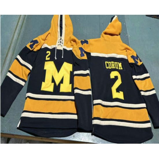 >Men's Michigan Wolverines #2 Blake Corum Navy Blue Ageless Must Have Lace Up Pullover Hoodie
