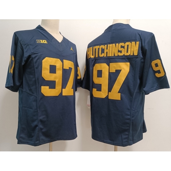 >Men's Michigan Wolverines #97 Aidan Hutchinson Navy 2023 F U S E Stitched NCAA Jersey