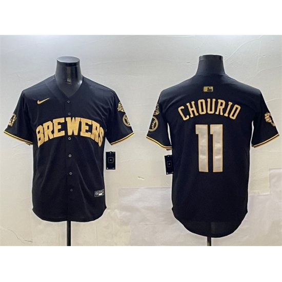 Men's Milwaukee Brewers #11 Jackson Chourio Black Gold With Home Limited Stitched Baseball Jersey