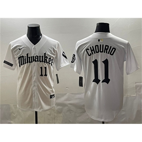 >Men's Milwaukee Brewers #11 Jackson Chourio White 'Gothic 414 Shadows Edition' Vapor Premier Limited Stitched Jersey