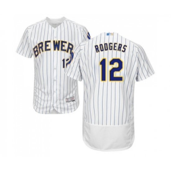 Men's Milwaukee Brewers #12 Aaron Rodgers White Home Flex Base Authentic Collection Baseball Jersey