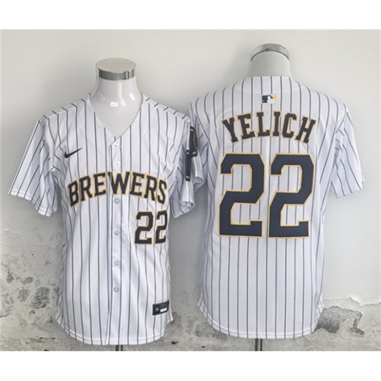>Men's Milwaukee Brewers #22 Christian Yelich White Alternate Limited Stitched Jersey