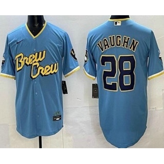 Men's Milwaukee Brewers #28 Andrew Vaughn Powder Blue City Connect Limited Stitched Baseball Jersey