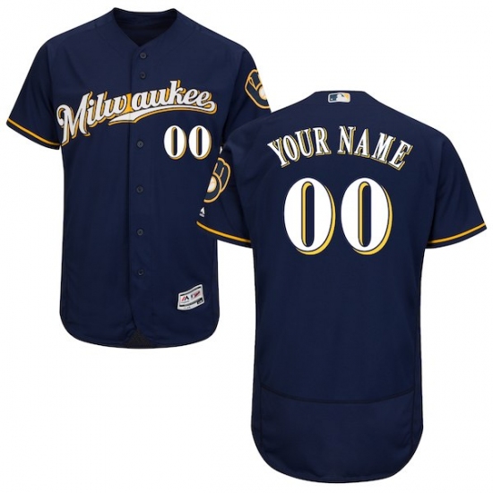 Men's Milwaukee Brewers Majestic Alternate Road Navy Flex Base Authentic Collection Custom Jersey