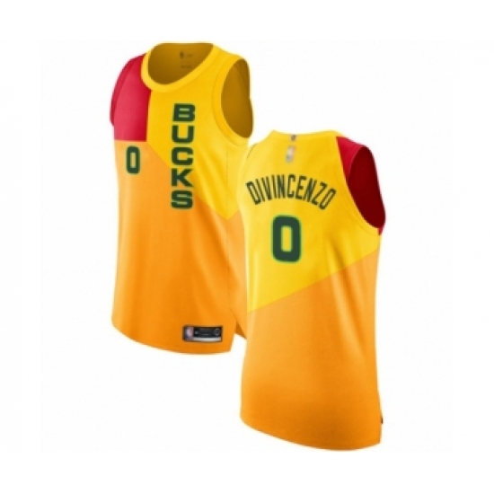 >Men's Milwaukee Bucks #0 Donte DiVincenzo Authentic Yellow Basketball Jersey - City Edition