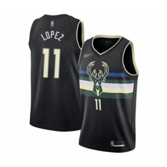 >Men's Milwaukee Bucks #11 Brook Lopez Authentic Black Finished Basketball Jersey - Statement Edition