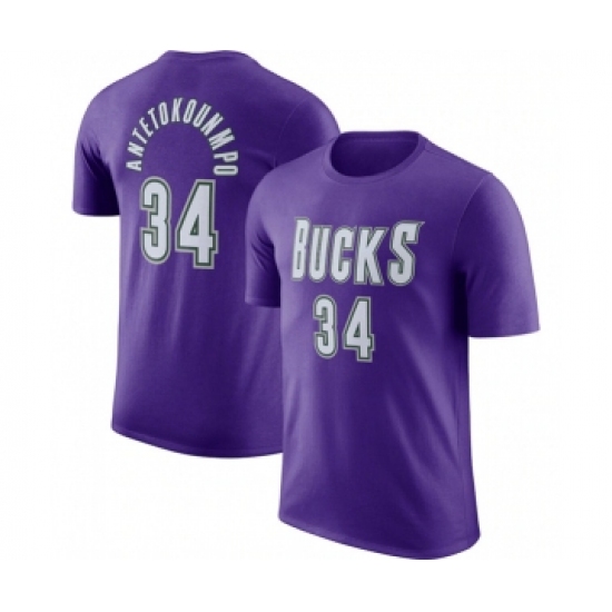 >Men's Milwaukee Bucks #34 Giannis Antetokounmpo Purple Hardwood Classic Long Sleeve T-Shirt