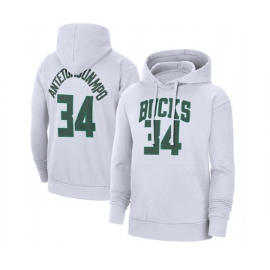 Men's Milwaukee Bucks #34 Giannis Antetokounmpo White Pullover Hoodie