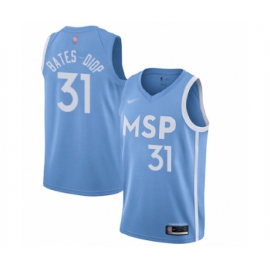 >Men's Minnesota Timberwolves #31 Keita Bates-Diop Swingman Blue Basketball Jersey - 2019 20 City Edition