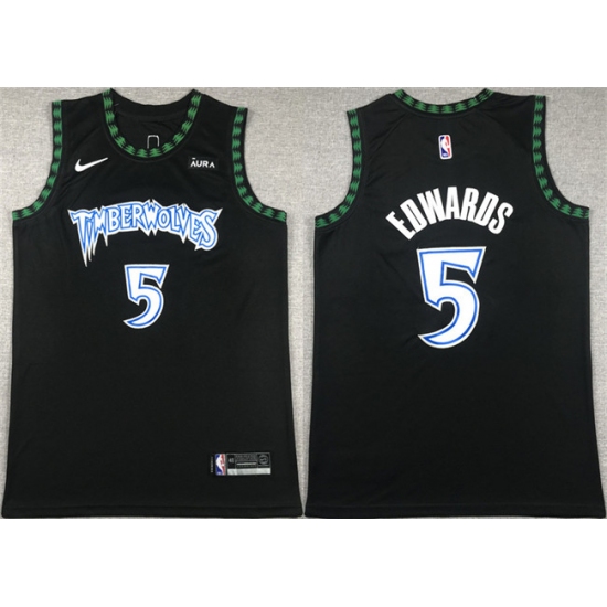 >Men's Minnesota Timberwolves #5 Anthony Edwards Black City Edition Stitched Jersey