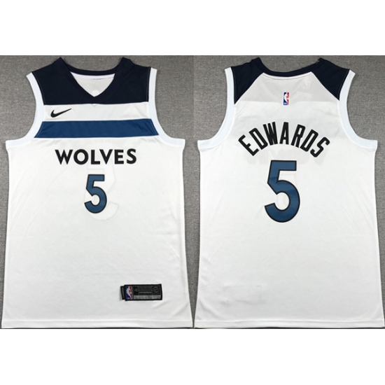Men's Minnesota Timberwolves #5 Anthony Edwards White Association Edition Stitched Jersey