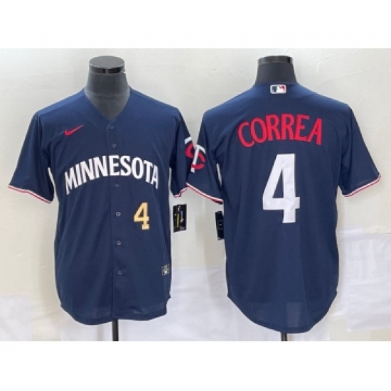 Men's Minnesota Twins #4 Carlos Correa 2023 Navy Blue Cool Base Stitched Jersey