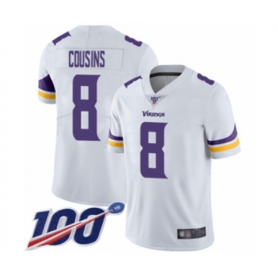 Men's Minnesota Vikings #8 Kirk Cousins White Vapor Untouchable Limited Player 100th Season Football Jersey