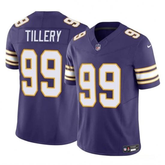 >Men's Minnesota Vikings #99 Jerry Tillery Purple 2023 F.U.S.E. Throwback Vapor Untouchable Limited Football Stitched Jersey