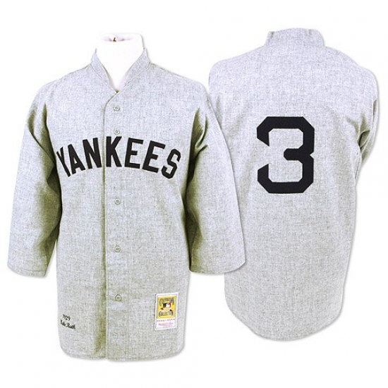 Men's Mitchell and Ness 1929 New York Yankees #3 Babe Ruth Authentic Grey Throwback MLB Jersey