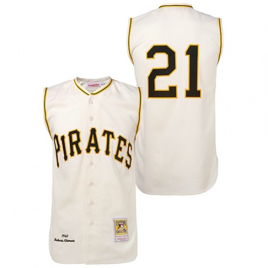 Men's Mitchell and Ness 1960 Pittsburgh Pirates #21 Roberto Clemente Authentic Cream Throwback MLB Jersey