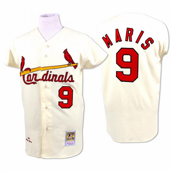Home>MLB>St. Louis Cardinals>Roger Maris>Men's Mitchell and Ness 1967 St. Louis Cardinals #9 Roger Maris Authentic Cream Throwback MLB Jersey