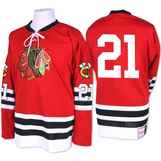 This Mitchell and Ness® Authentic Hockey Jersey replicates the player worn Pro-cut jersey in fabric, trim and team design. It's made of double knit polyester and has four-way stretch mesh, which provides a balance of ventilation and range of motion in the underarm and back areas. The jersey is designed with a combination of direct embroidery and applique twill graphics, 100% double knit polyester, Hockey® shield patch is sewn on the bottom front of the collar fabric insert, Authentic tie down "fight" strap attached inside back of jersey, Authentic tie down "fight" strap attached inside back of jersey, Decorated in the team colors, Officially licensed,imported.