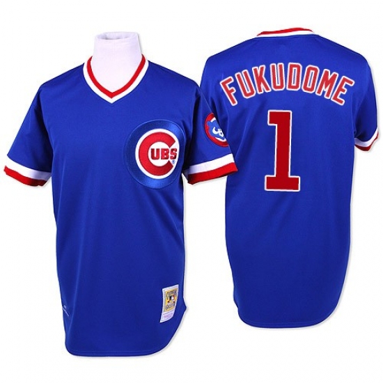 Men's Mitchell and Ness Chicago Cubs #1 Kosuke Fukudome Replica Blue Throwback MLB Jersey