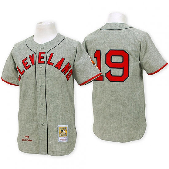 Men's Mitchell and Ness Cleveland Indians #19 Bob Feller Authentic Grey Throwback MLB Jersey