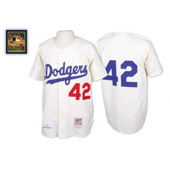 Men's Mitchell and Ness Los Angeles Dodgers #42 Jackie Robinson Authentic White Throwback MLB Jersey