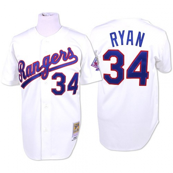 Men's Mitchell and Ness Texas Rangers #34 Nolan Ryan Authentic White Throwback MLB Jersey