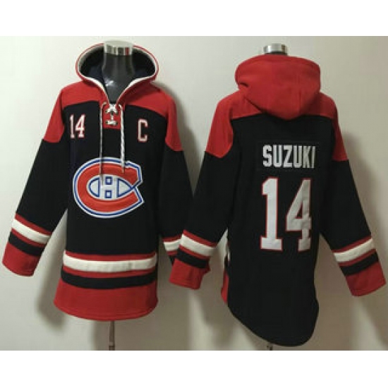 Men's Montreal Canadiens #14 Nick Suzuki Navy Blue Ageless Must Have Lace Up Pullover Hoodie