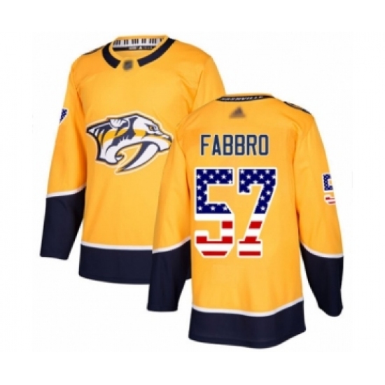 >Men's Nashville Predators #57 Dante Fabbro Authentic Gold USA Flag Fashion Hockey Jersey