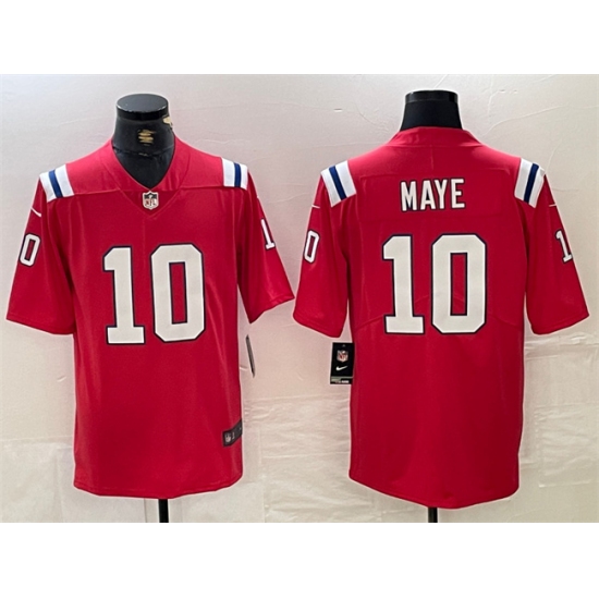 Men's New England Patriots #10 Drake Maye Red 2024 Draft Vapor Limited Football Stitched Jersey