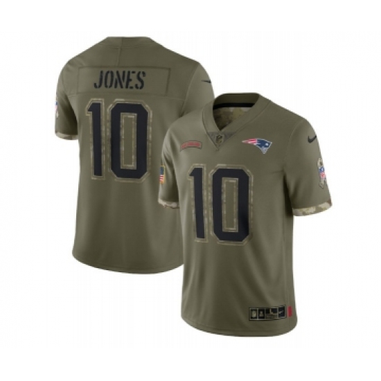 >Men's New England Patriots #10 Mac Jones 2022 Olive Salute To Service Limited Stitched Jersey