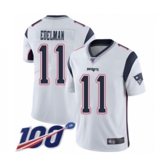 >Men's New England Patriots #11 Julian Edelman White Vapor Untouchable Limited Player 100th Season Football Jersey