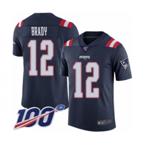 >Men's New England Patriots #12 Tom Brady Limited Navy Blue Rush Vapor Untouchable 100th Season Football Jersey