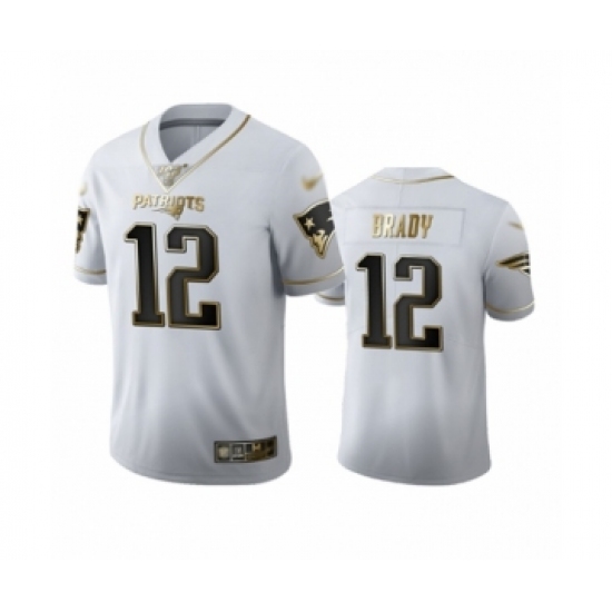 >Men's New England Patriots #12 Tom Brady Limited White Golden Edition Football Jersey
