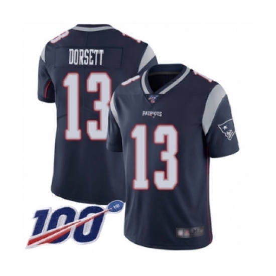 >Men's New England Patriots #13 Phillip Dorsett Navy Blue Team Color Vapor Untouchable Limited Player 100th Season Football Jersey