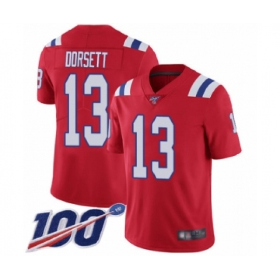>Men's New England Patriots #13 Phillip Dorsett Red Alternate Vapor Untouchable Limited Player 100th Season Football Jersey