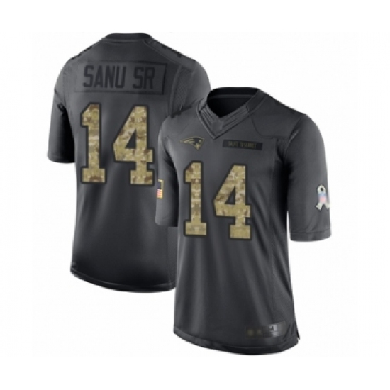 >Men's New England Patriots #14 Mohamed Sanu Sr Limited Black 2016 Salute to Service Football Jersey