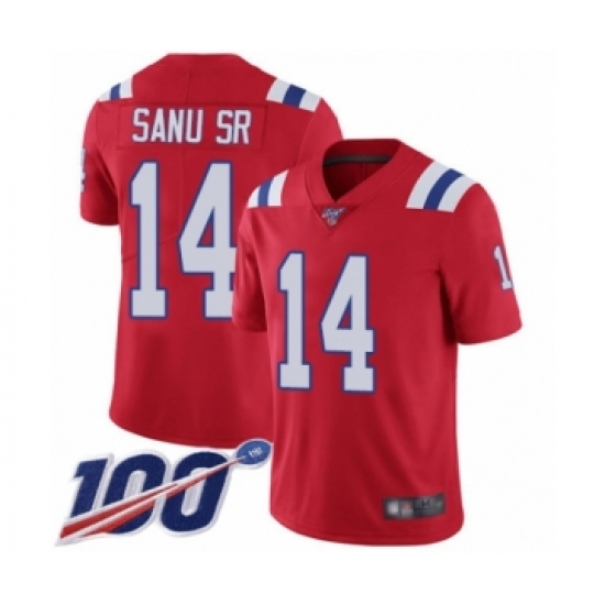 Men's New England Patriots #14 Mohamed Sanu Sr Red Alternate Vapor Untouchable Limited Player 100th Season Football Jersey