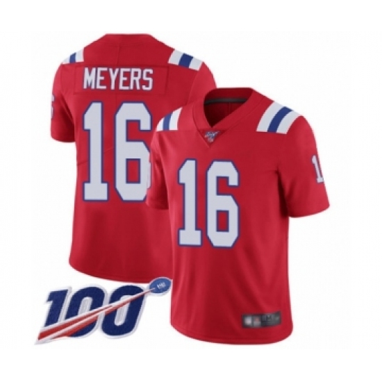 Men's New England Patriots #16 Jakobi Meyers Red Alternate Vapor Untouchable Limited Player 100th Season Football Jersey