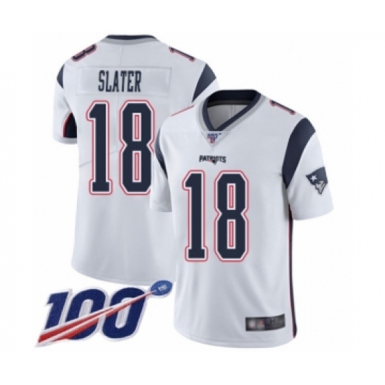 >Men's New England Patriots #18 Matthew Slater White Vapor Untouchable Limited Player 100th Season Football Jersey