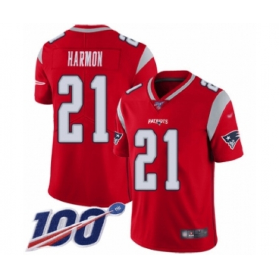 >Men's New England Patriots #21 Duron Harmon Limited Red Inverted Legend 100th Season Football Jersey