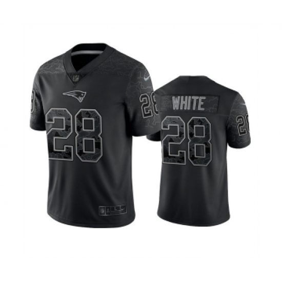 >Men's New England Patriots #28 James White Black Reflective Limited Stitched Football Jersey
