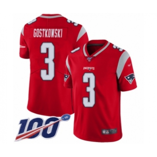 >Men's New England Patriots #3 Stephen Gostkowski Limited Red Inverted Legend 100th Season Football Jersey