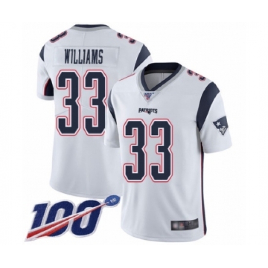 Men's New England Patriots #33 Joejuan Williams White Vapor Untouchable Limited Player 100th Season Football Jersey