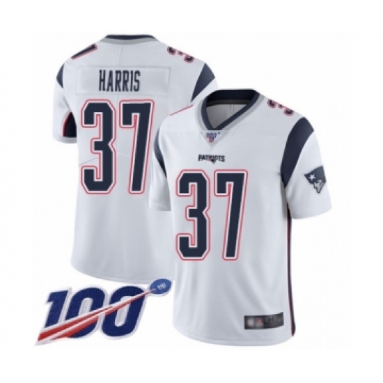 Men's New England Patriots #37 Damien Harris White Vapor Untouchable Limited Player 100th Season Football Jersey