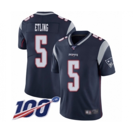 Men's New England Patriots #5 Danny Etling Navy Blue Team Color Vapor Untouchable Limited Player 100th Season Football Jersey