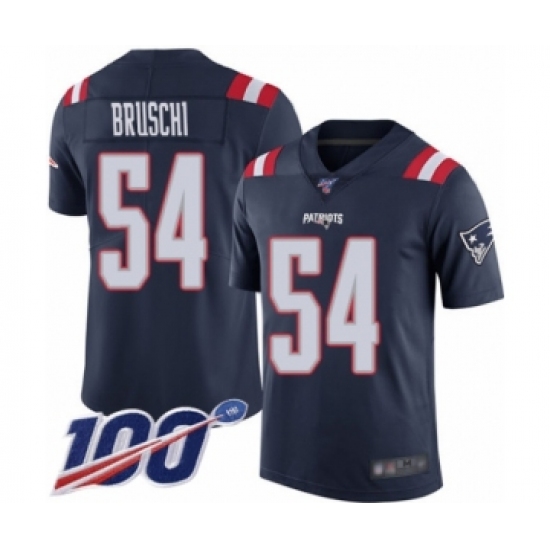 >Men's New England Patriots #54 Tedy Bruschi Limited Navy Blue Rush Vapor Untouchable 100th Season Football Jersey