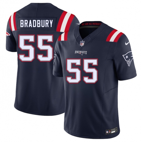 Men's New England Patriots #55 Garrett Bradbury Navy 2025 F.U.S.E. Vapor Limited Football Stitched Jersey