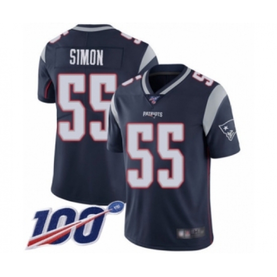 Men's New England Patriots #55 John Simon Navy Blue Team Color Vapor Untouchable Limited Player 100th Season Football Jersey